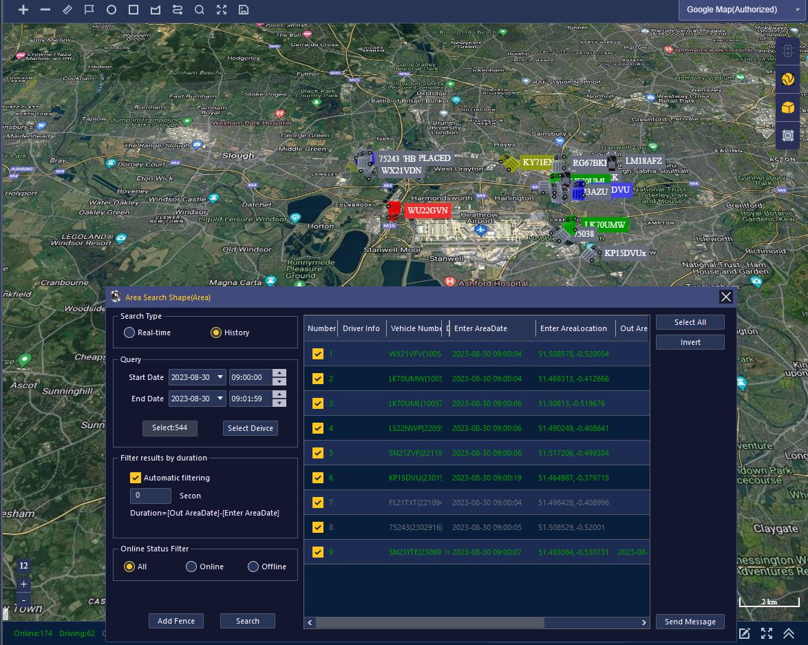 - GEO Fence vehicles entering or leaving specific locations times