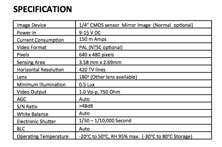 - 1/4″ SHARP CCD Chip set – 180 degree viewing angle